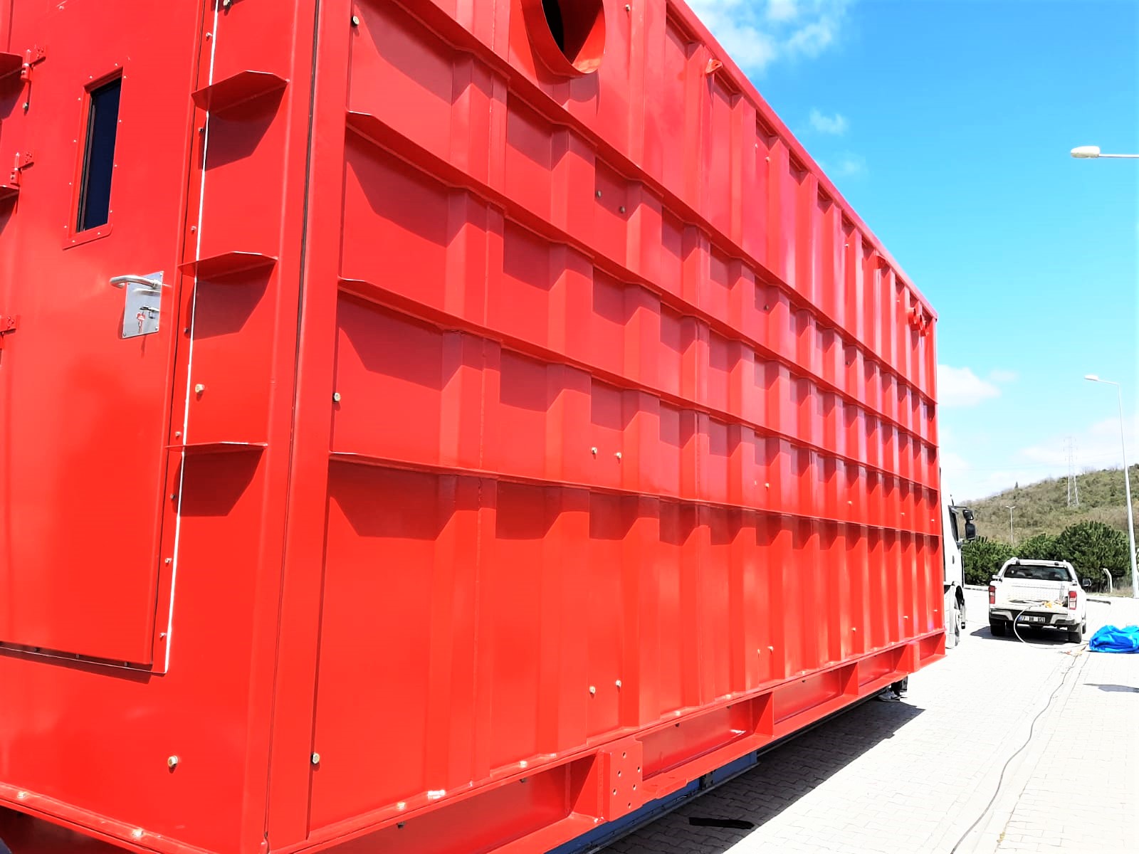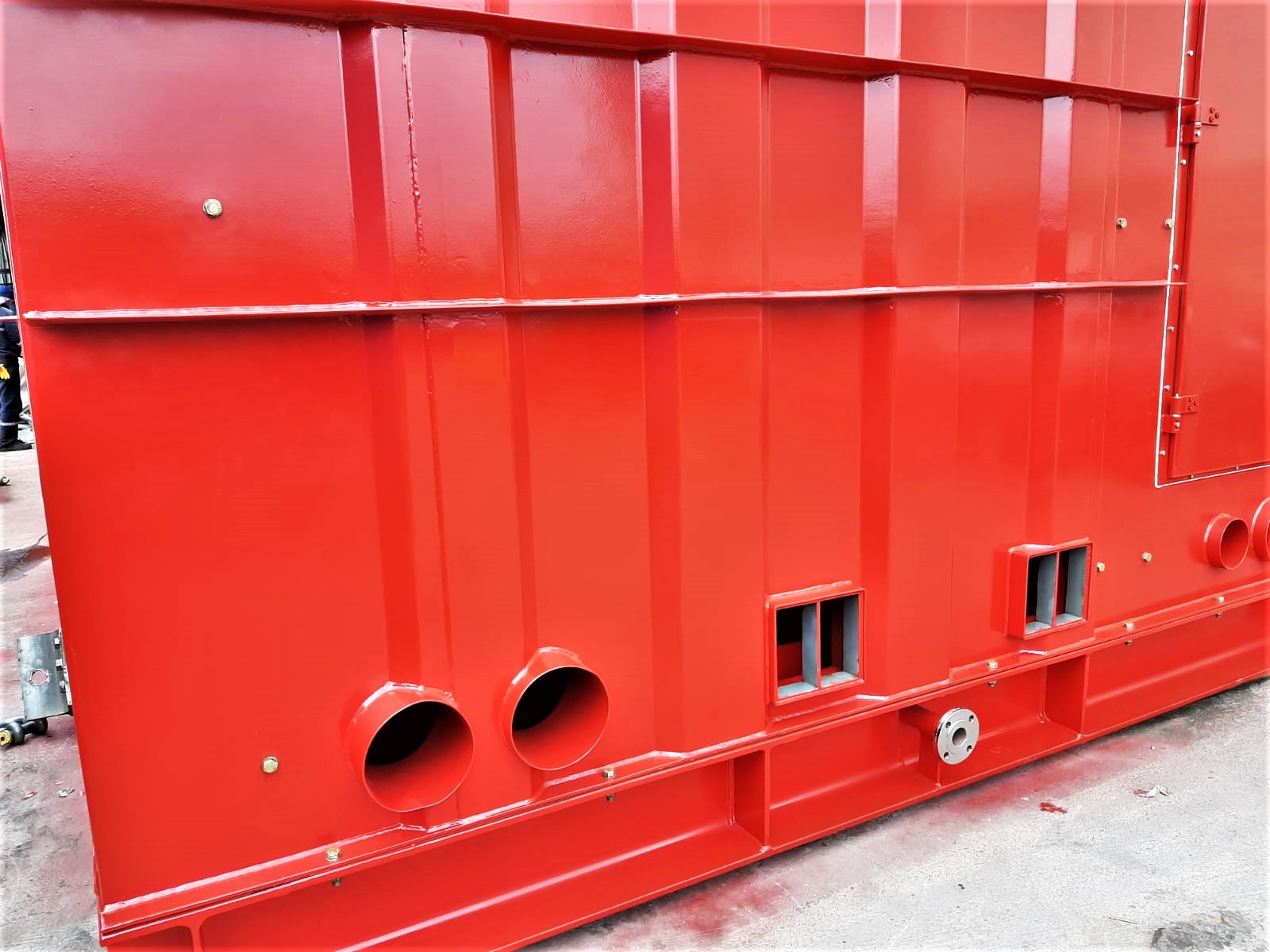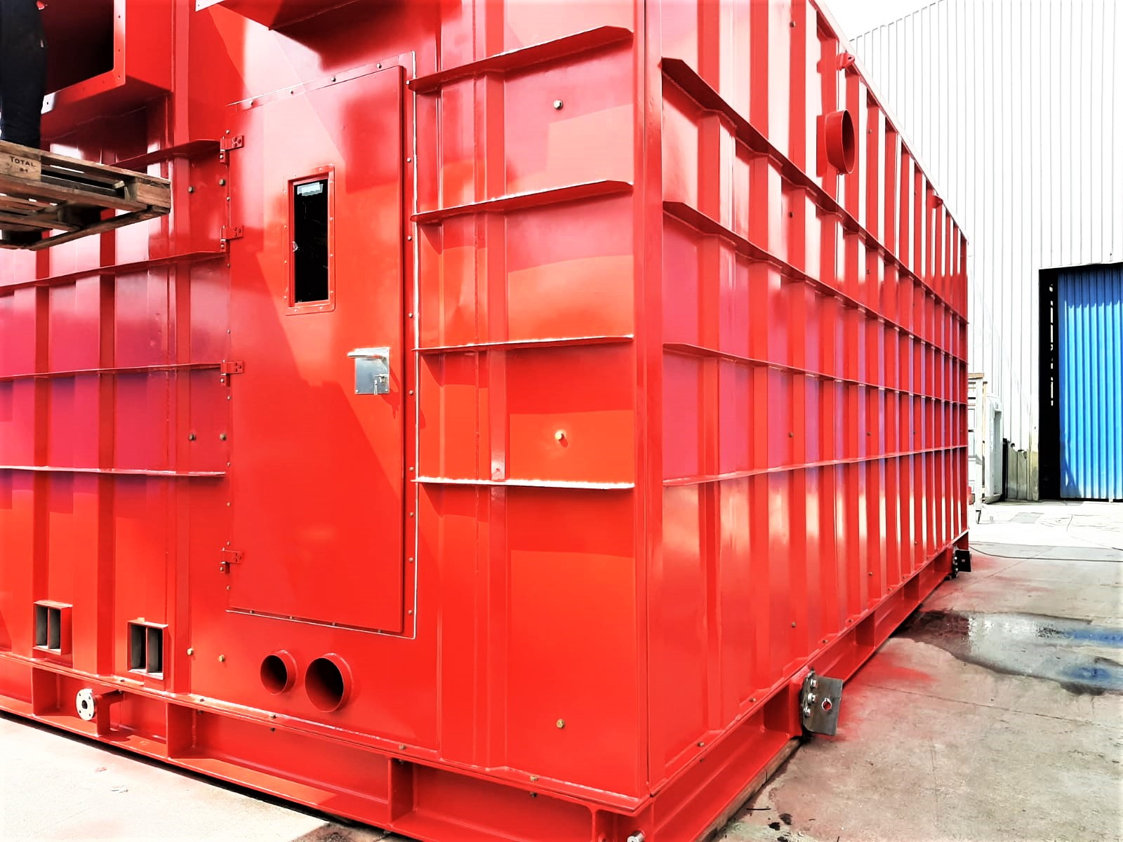 Large and advanced Fire Fighting cabinets with A60 Class rating are manufactured under Bureau Veritas surveillance and certified accordingly. Coating is as per End user specification and monitored by Frosio Level III coating inspectors. Lare cabins are 10 m long, 5 m wide and 4.5 m high.